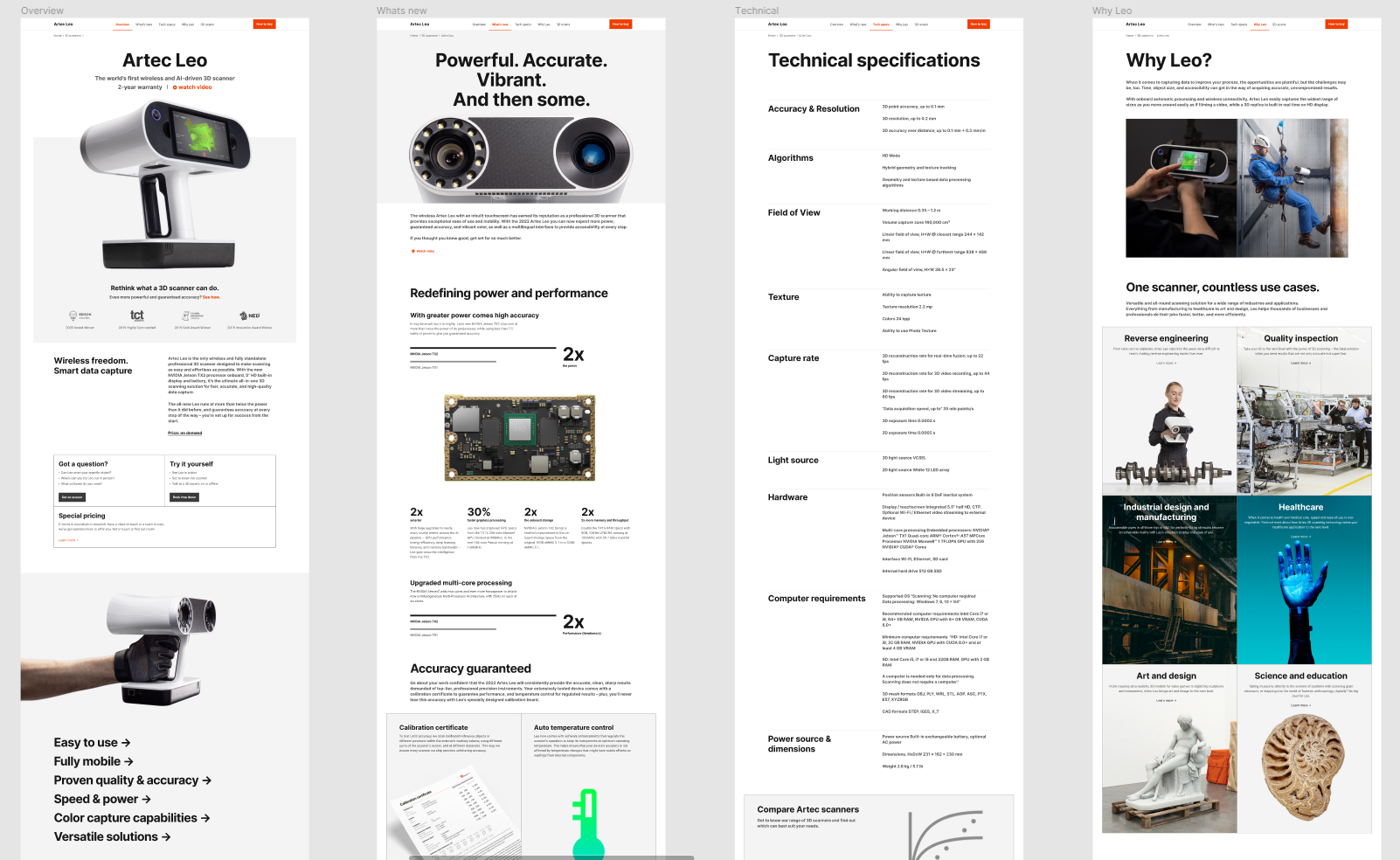 Конечно для софта есть отдельная продуктовая страница, но так как софт является важнейшей частью пайплайна сканирования – описание ключевых возможностей обозначается и на страницах hardware-продуктов.FAQ необходим для SEO, и для отработки вопросов, часто задаваемых командам поддержки и сейлз.